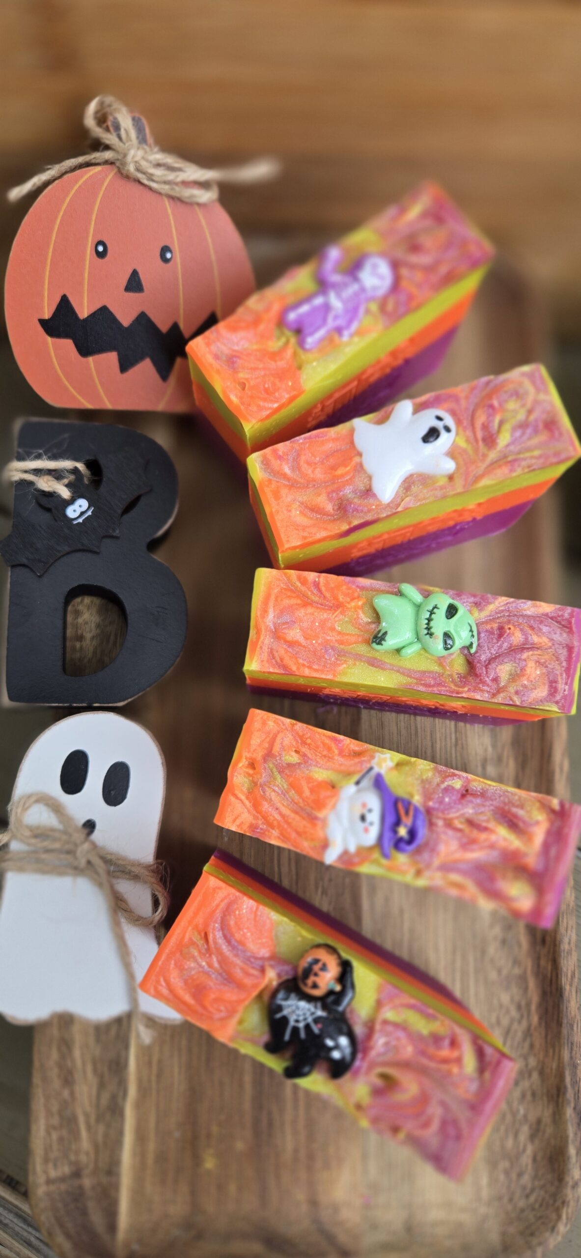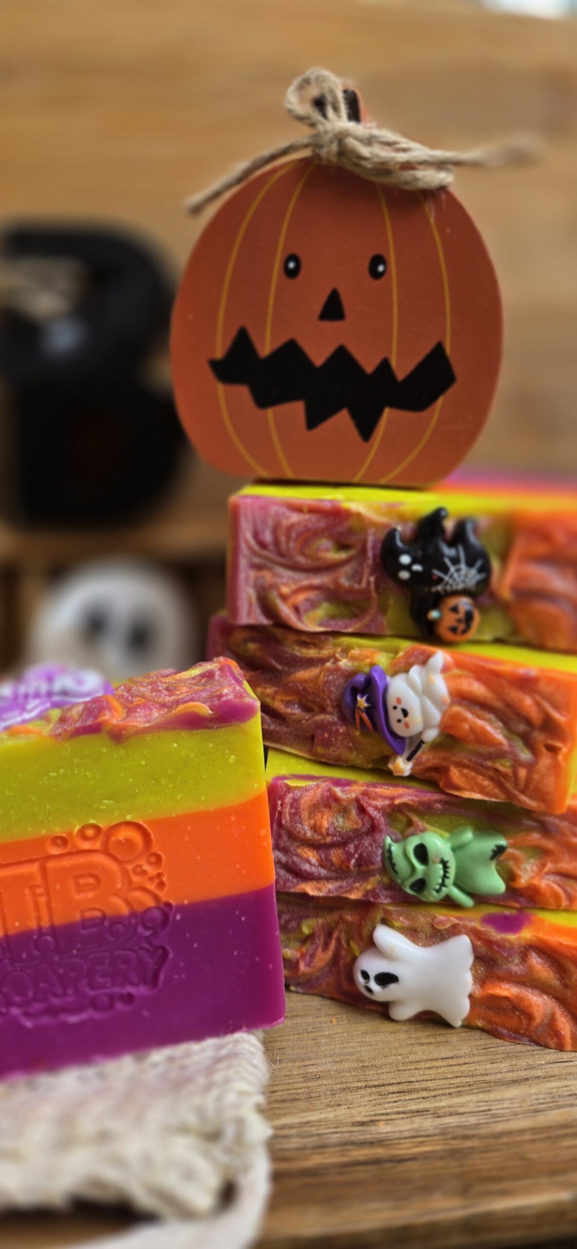 Summon a little magic at bath time with our Spooky Soap, handcrafted with a bewitching blend of skin-loving oils and deeply nourishing ingredients. This creamy bar is perfect for pampering your skin while embracing the fun, mysterious spirit of the season.